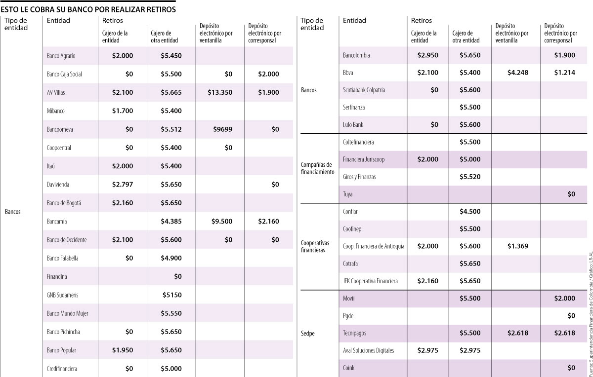 “Siempre hay un mecanismo o un canal gratuito para el retiro de dinero, todas las entidades tienen habilitados canales sin costos. Estos cobros sirven para mantener la infraestructura y para desincentivar el uso del efectivo, pero son cada vez menos frecuentes en los bancos colombianos. Las entidades, en su competencia por los usuarios, están ofreciendo productos y servicios cada vez mejores y menos costosos. Hoy en día no son extrañas las cuentas y tarjetas sin este tipo de cobros y la invitación a los usuarios siempre es a comparar entre las diferentes opciones que hay en el mercado y a elegir la que más les convenga”, expresó Andrés Rojas, vicepresidente de Asuntos Corporativos de la Asociación Bancaria y de Entidades Financieras de Colombia (Asobancaria).