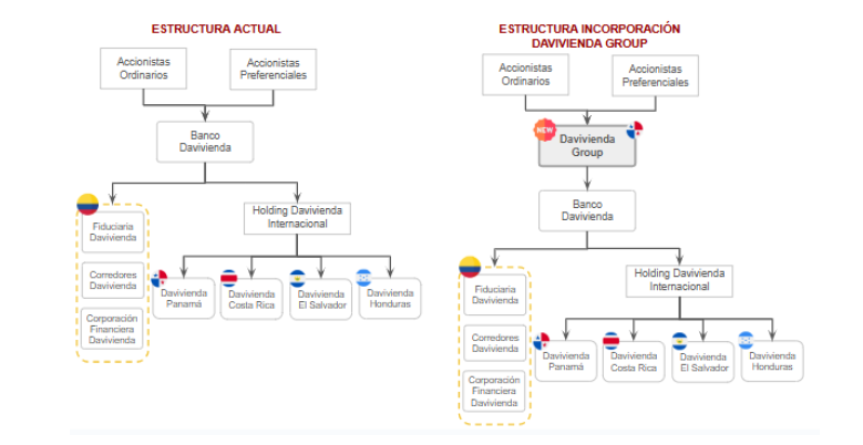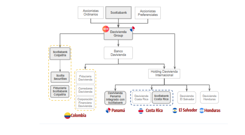 Como parte de su estrategia multilatina global, algunos accionistas actuales del Banco Davivienda constituyeron en Panamá la sociedad Davivienda Group, con el fin de que sea la holding de hasta el 100% de las acciones del Banco Davivienda y permita a los actuales accionistas del Banco Davivienda (ordinarios y preferenciales), previas las autorizaciones respectivas, participar en los nuevos negocios derivados de dicha estrategia y de los beneficios de la integración de las operaciones con Scotiabank