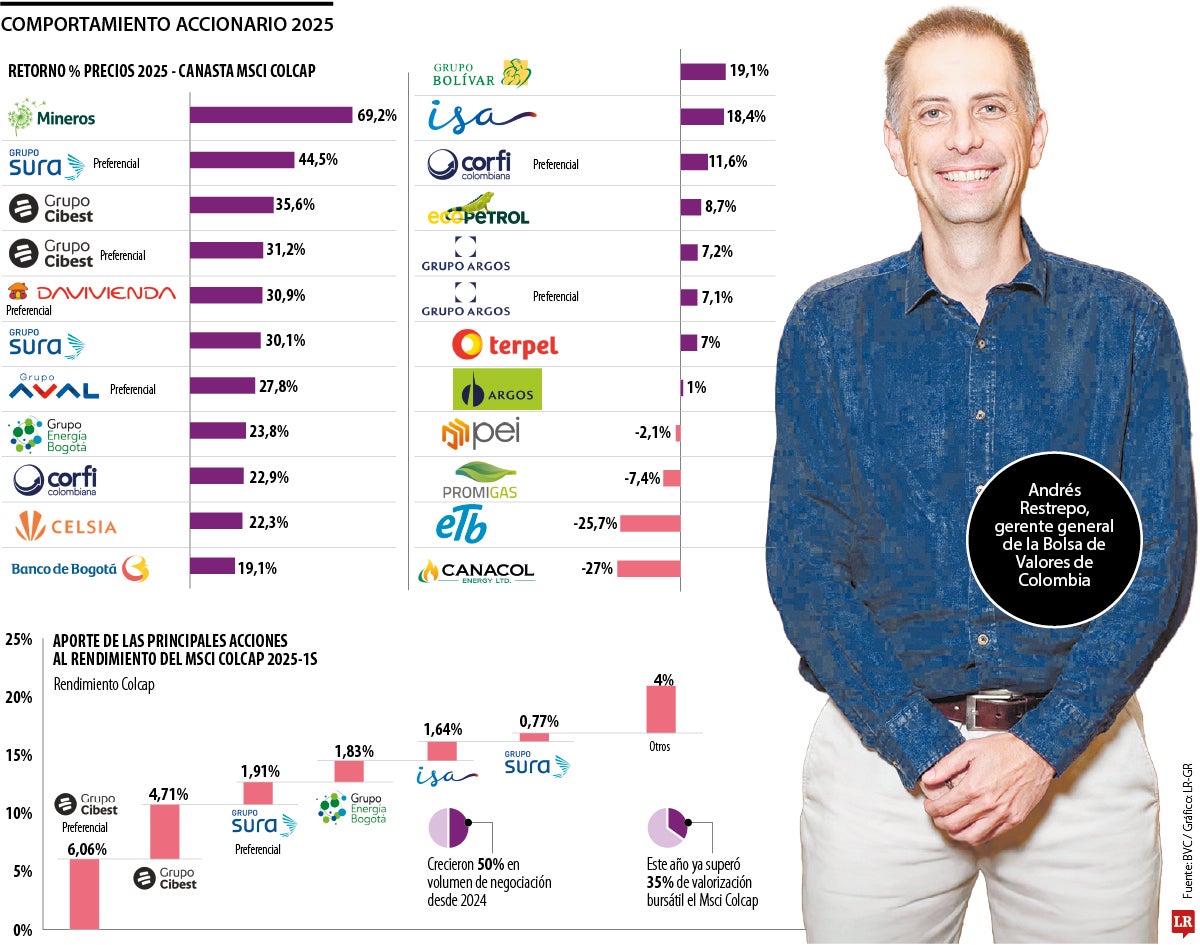 Este año y de hecho desde 2024, el termómetro que mide el desempeño del mercado viene muy bien. Viene marcando muy bien, y esto es por varios indicadores. Uno, por la valorización de los activos locales, de las acciones. Entonces hemos tenido una recuperación muy importante de los precios. Este año ya estamos superando 35% de valorización, e incluso eso es importante sumarle los dividendos de las empresas. No solo la valorización de las acciones, sino los dividendos. Entonces eso va muy bien en el mercado.