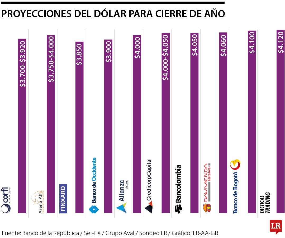 Bancolombia, Banco de Bogotá, Davivienda Corredores, CredicorpCapital y Alianza Valores, son algunas de las comisionistas que ubican la divisa al alza