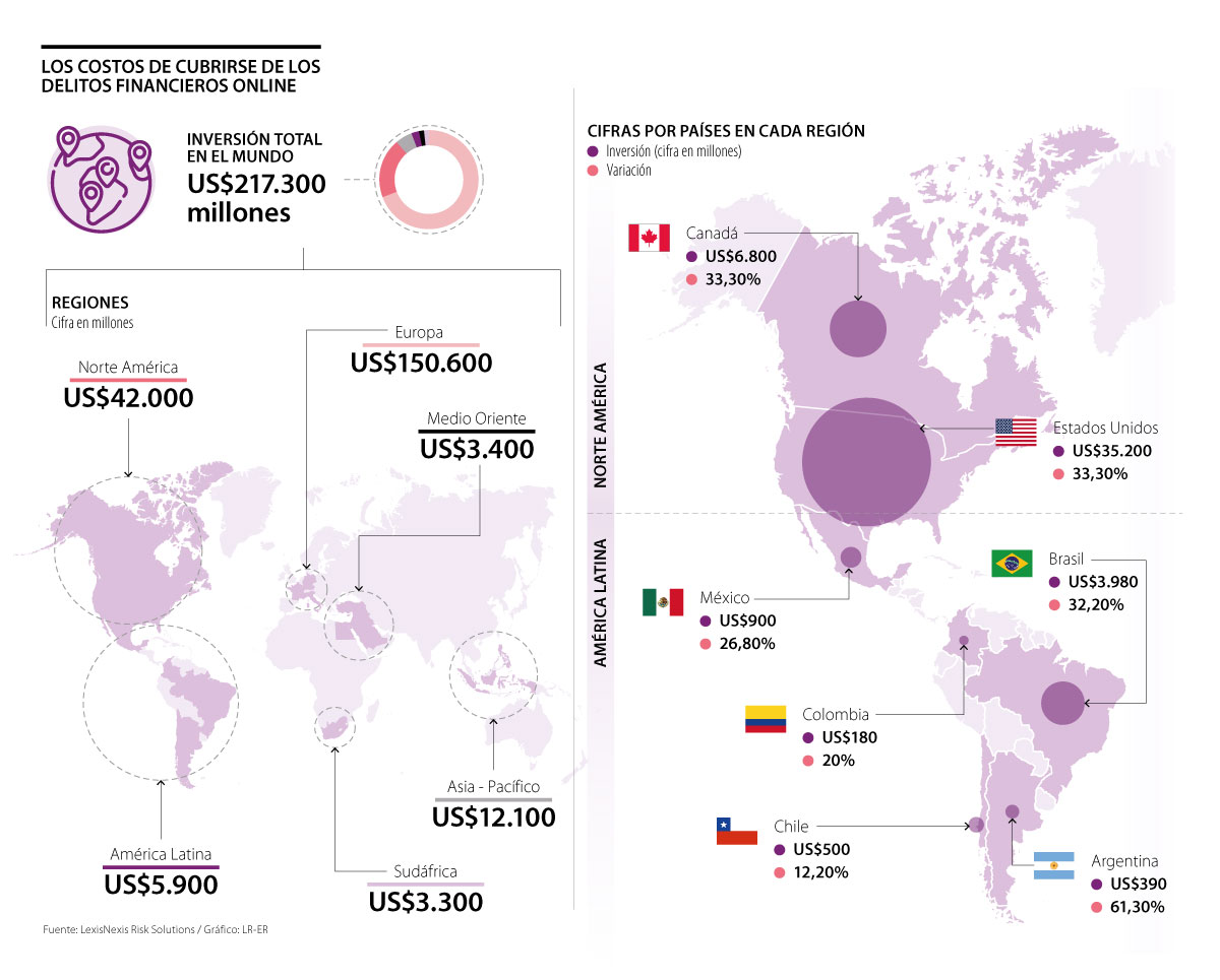 Según un estudio de la compañía global de datos y análisis LexisNexis Risk Solutions, durante el año paso en el mundo se destinaron US$213.900 millones a este tipo de prevención, superando los 180.900 millones registrados en 2019. En América Latina se invirtieron US$5.900 millones, 31,1% más que en 2019, periodo para el cual se desembolsaron US$4.500 millones.