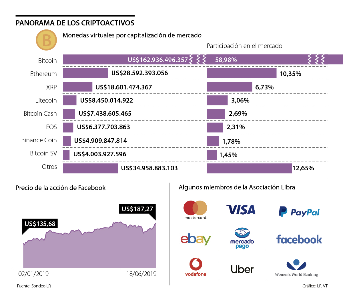 Después de más de una década desde su creación y tras consolidarse como la red social con mayor cantidad de usuarios activos, 2.271 millones al mes, Facebook quiere ampliar su negocio más allá de plataformas como Instagram (1.000 millones) y WhatsApp (1.500 millones) incursionando en el comercio electrónico y, principalmente, en operaciones de criptoactivos.