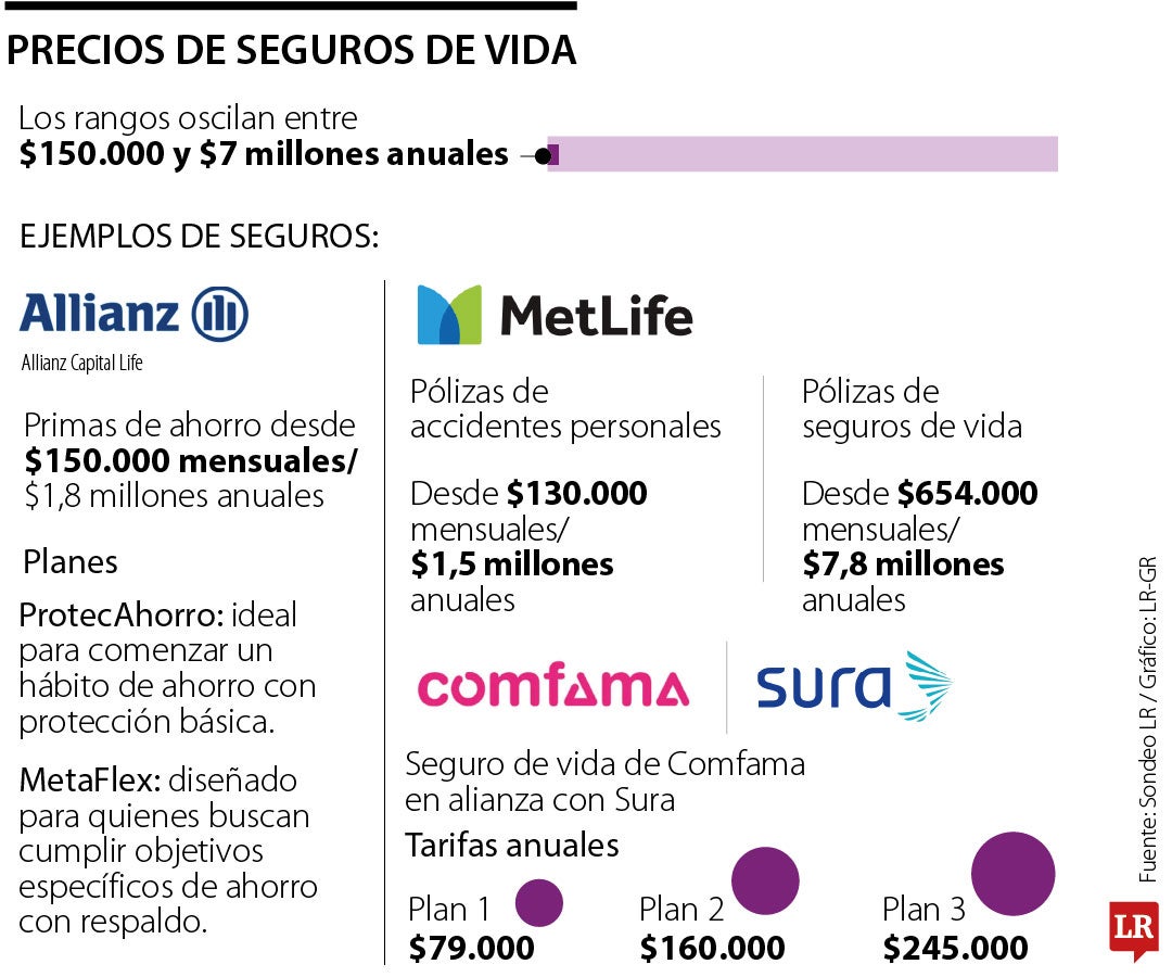Otro de los productos que ofrece el mercado es el de MetLife, el cual tiene una póliza de accidentes personales que tiene un precio de $1,5 millones anuales, o alrededor de $130.000 mensuales. La empresa también ofrece pólizas de seguro de vida desde $654.000 mensuales, lo que se traduce en $7,8 millones al año.