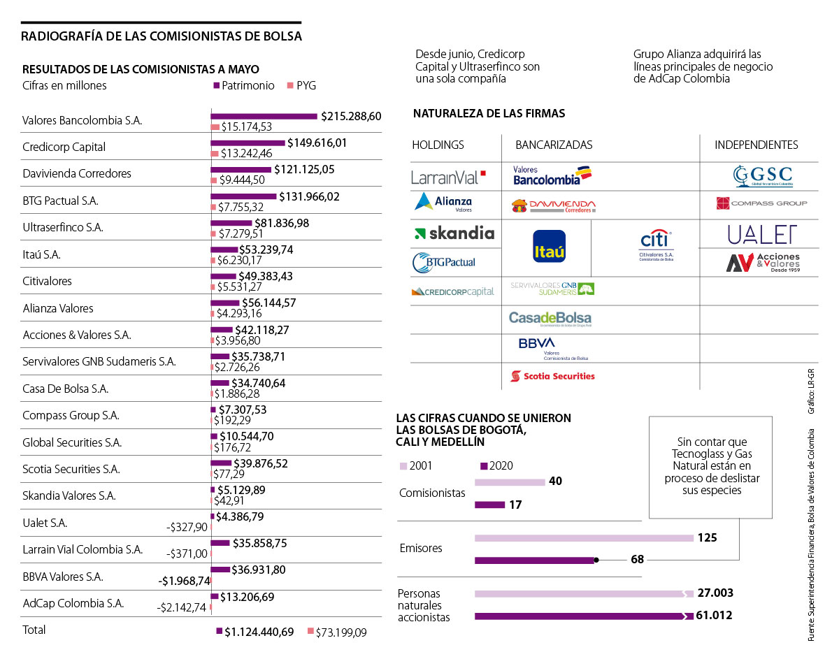 Con la aprobación de este negocio, en el mercado quedarán activas 17 comisionistas de Bolsa. La cifra contrasta con las 40 firmas que había en 2001, cuando se fusionaron las Bolsas de Bogotá, Cali y Medellín.