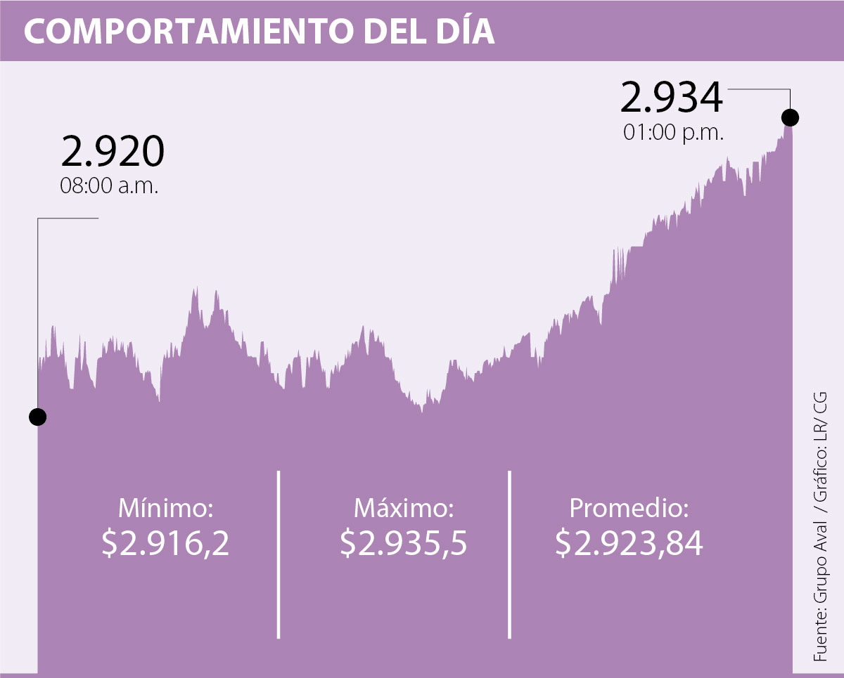 Según la plataforma Set-Fx, el precio mínimo que registró la moneda fue de $2.916,20 mientras que el máximo fue $2.935,50. Al final de la jornada, la divisa alcanzó a cerrar en $2.934.
