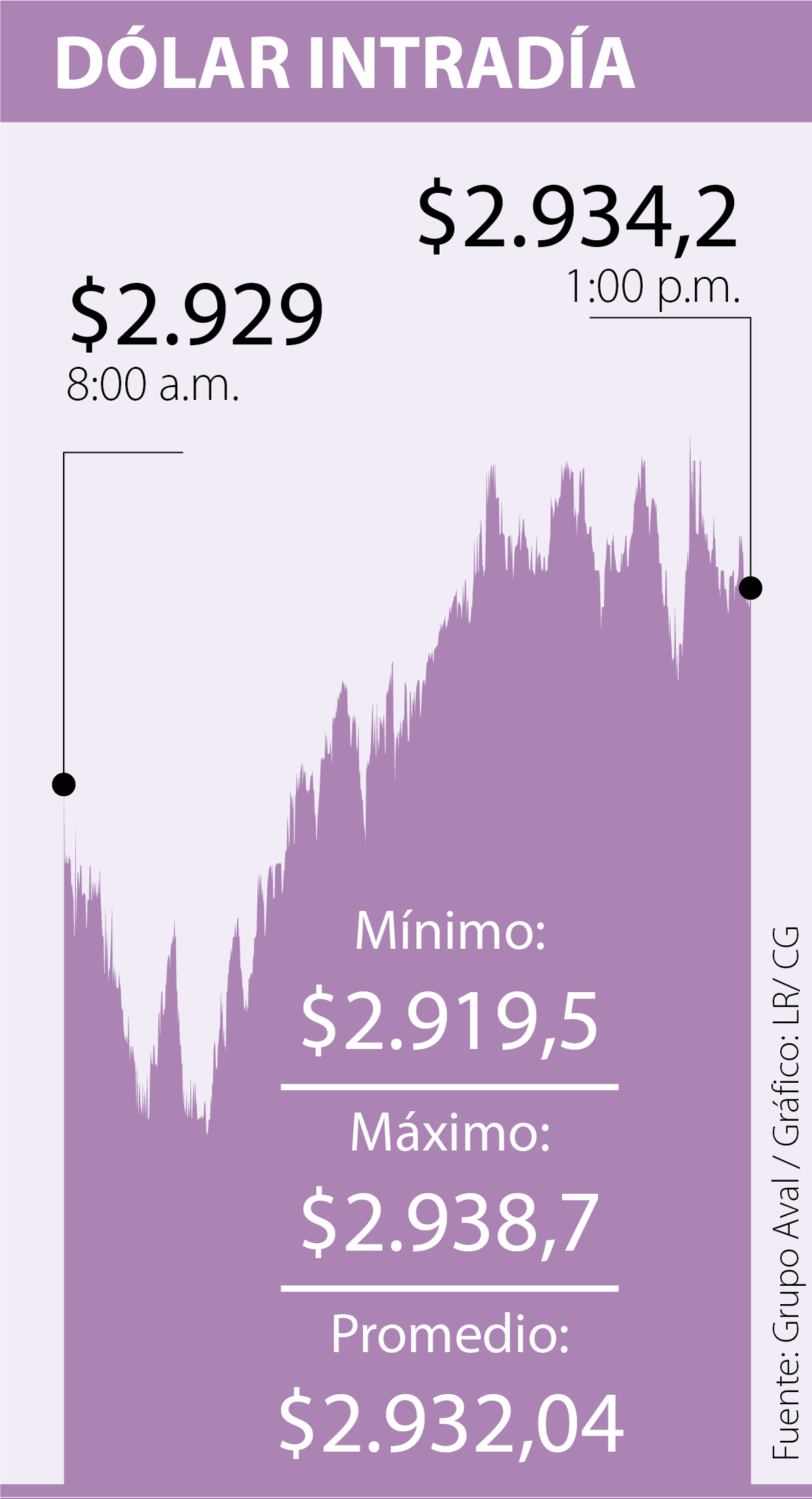 La divisa abrió la jornada con un precio de $2.930 y su cierre fue de $2.934,20.