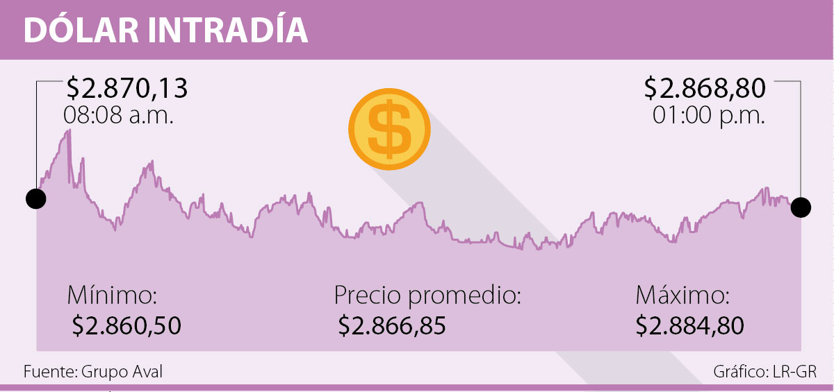 En una jornada estable del mercado cambiario, el dólar presentó una caída de $4,51 frente a la Tasa Representativa del Mercado (TRM) que se ubicó en $2.871,36.