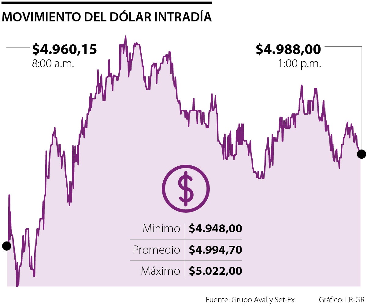 Esta fue una jornada mucho más estable, comparada con dos días alcistas, que llevaron al dólar de $4.800 a superar la barrera de los $5.000.