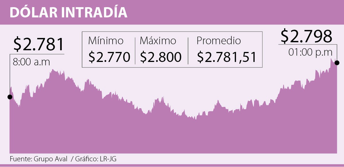 La divisa abrió la jornada con un precio de $2.781 y su cierre fue de $2.793,05.