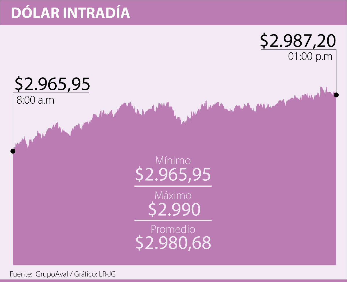 Al cierre de la jornada del jueves, el dólar alcanzó un precio promedio de $2.980,68, lo que representó un alza de $15,23 frente a la Tasa Representativa del Mercado (TRM) que se ubicó en $2.965,45.