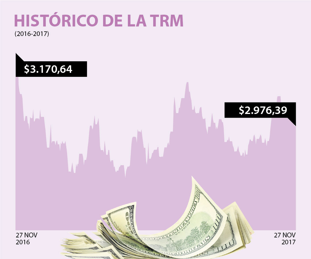 Sin embargo, frente al peso colombiano, la moneda estadounidense logró recuperar algo del terreno que perdió en los últimos ocho días, pues de $3.011,32 pasó a abrir la semana en $2.976,39.