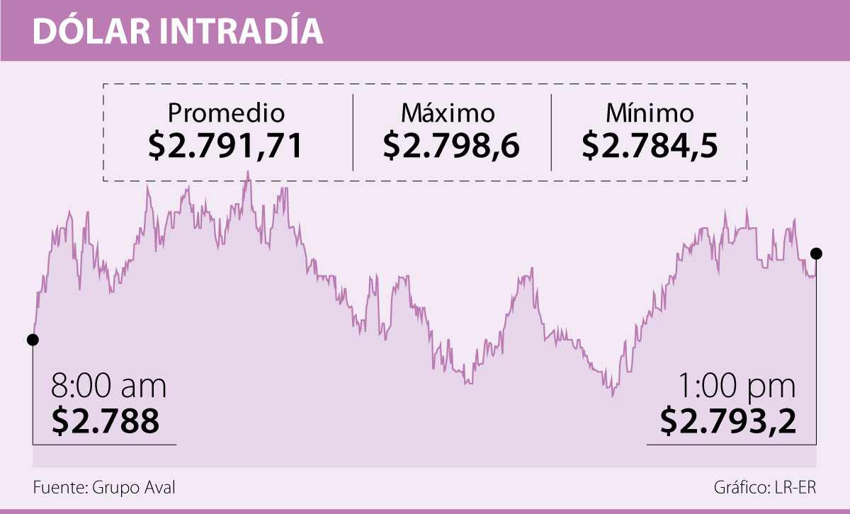 En las negociaciones en Colombia el precio mínimo fue de $2.784,50 y el máximo de $2.798,60. En operaciones se negociaron US$989,4 millones en 1.363 transacciones.