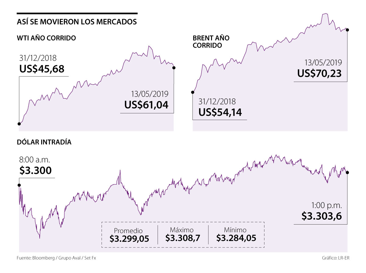 La guerra comercial entre Estados Unidos y China también impactaron negativamente los precios del petróleo, tanto para la referencia Brent como WTI, que cerraron a la baja según los precios que reportó Reuters. Los futuros del crudo WTI disminuyeron 1,01%, por lo que el barril se ubicó en US$61,04, mientras que los futuros del crudo Brent disminuyó 0,55%, así que el barril quedó a US$70,23. Cabe mencionar que las primeras operaciones de la jornada estuvieron al alza por las preocupaciones sobre los ataques de sabotaje contra petroleros en Medio Oriente.