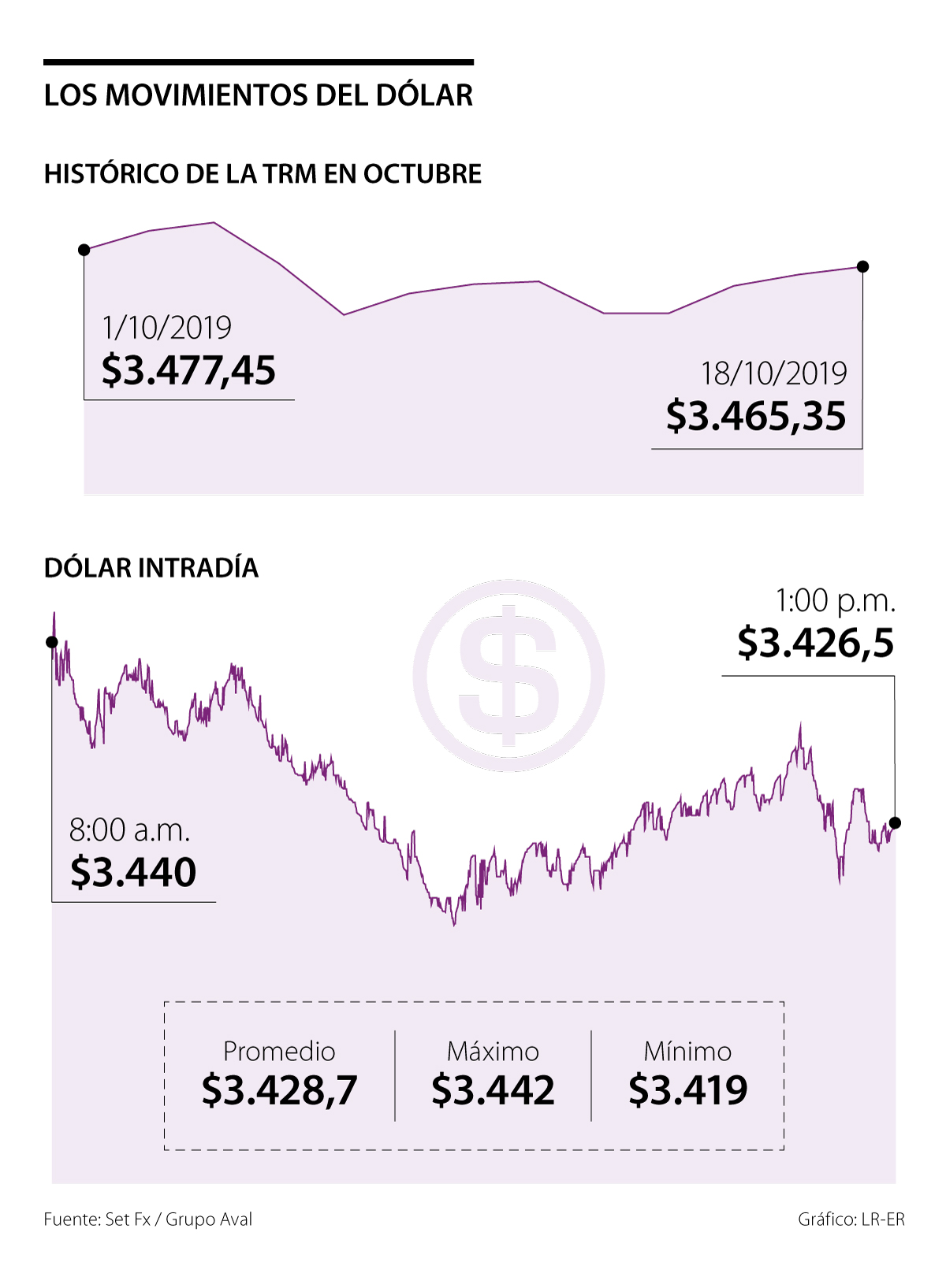 Además, si se toma la primera TRM de octubre y se compara con el precio promedio alcanzado el viernes, en lo que va del mes el dólar ha perdido 1,40%, es decir $48,75.