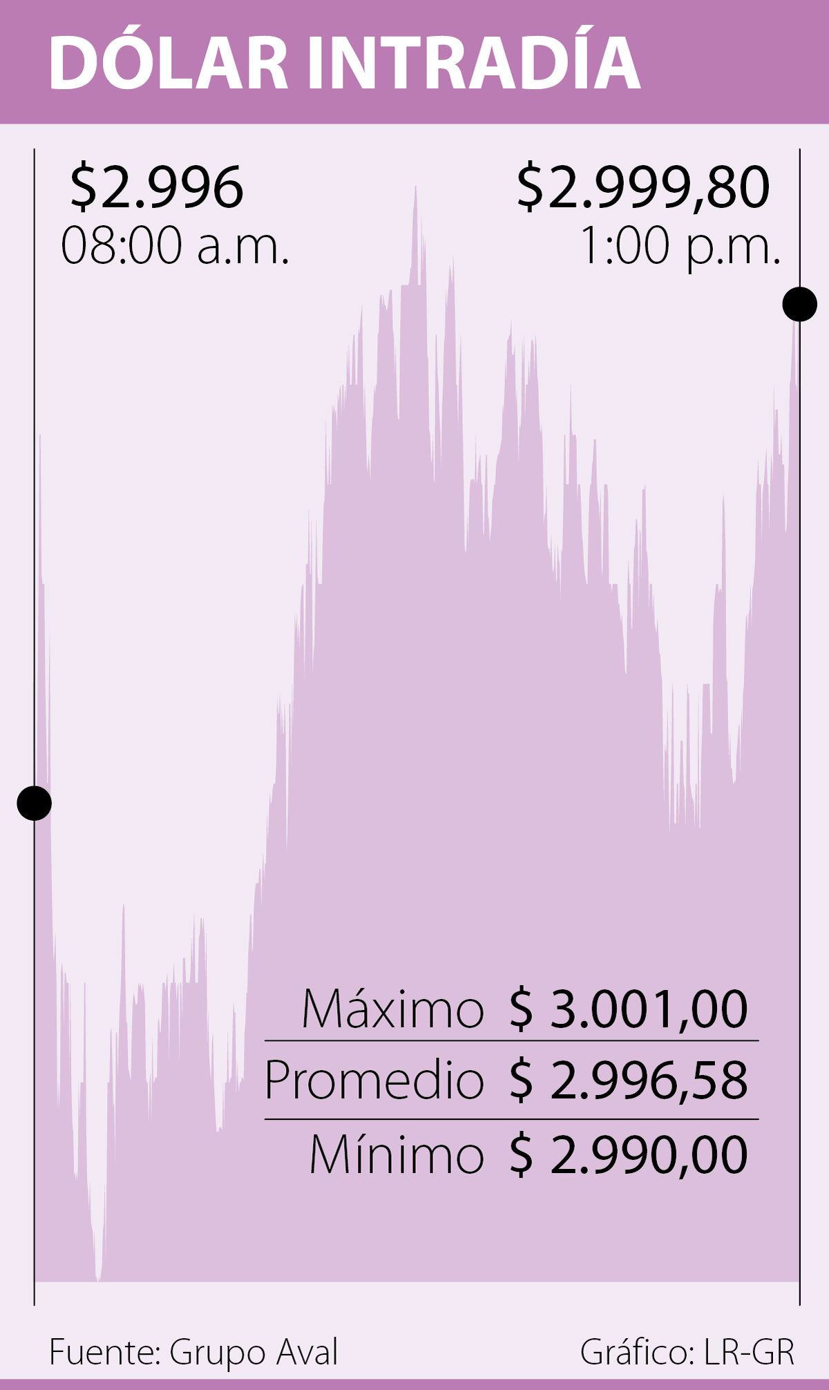 La divisa abrió la jornada con un precio de $2.996 y su cierre fue de $2.999,80.