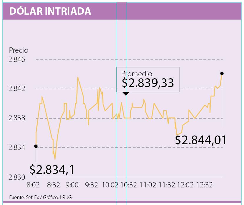 La apertura de la moneda fue de $2.834,01, y su cierre sobre la 1:00 p.m. estuvo en $2.844,01.