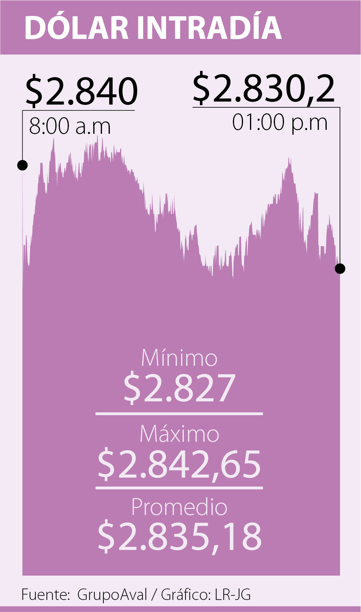 El valor mínimo que se registró en la plataforma Set-Fx fue de $2.827, mientras que el máximo al que alcanzó a llegar fue de $2.842,65.