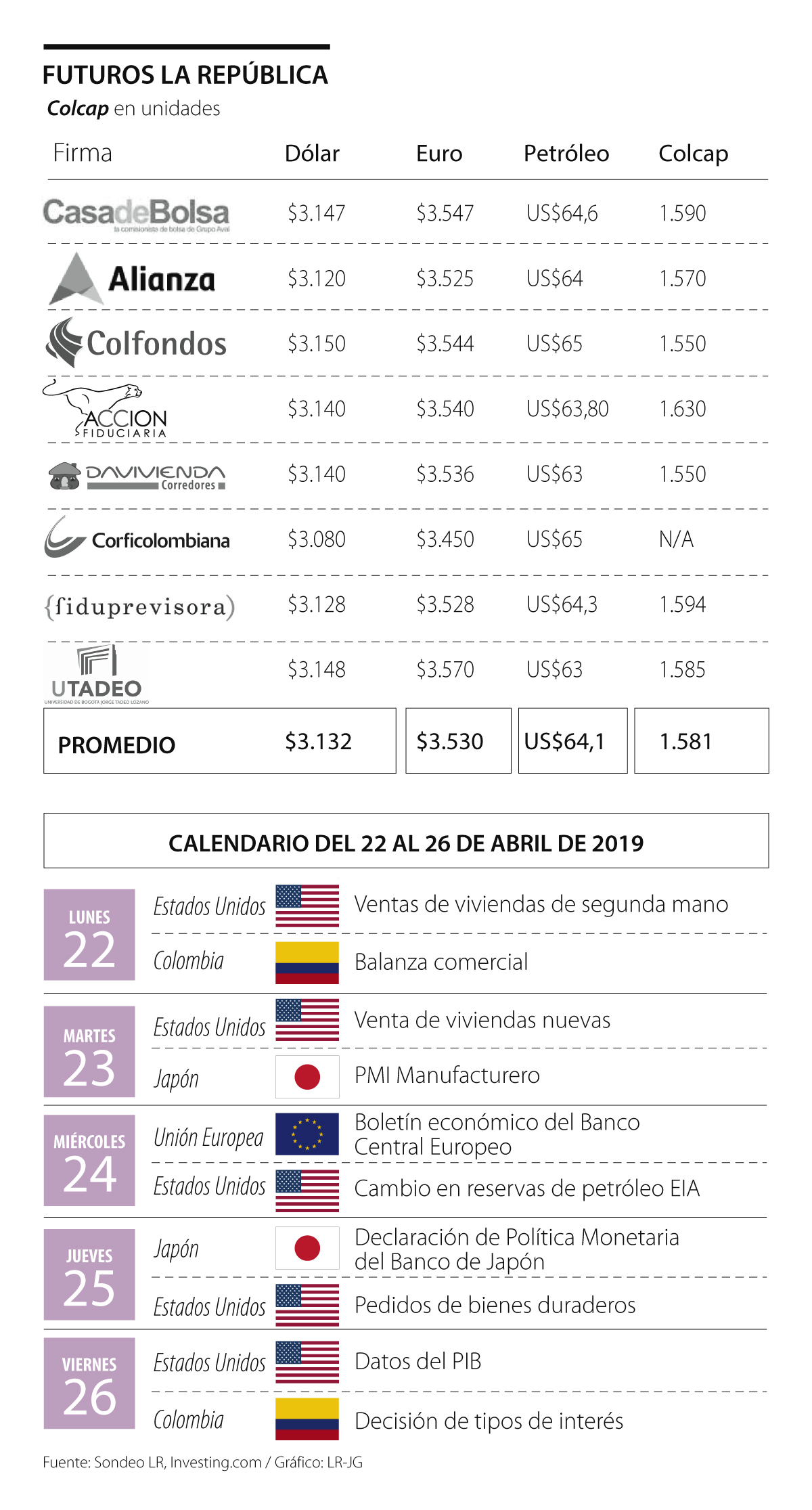 Sin embargo, esto dependerá en gran parte de las noticias provenientes desde Estados Unidos, pues según lo señala Felipe Espitia, analista macroeconómico de Alianza Valores, el mercado estará atento a la continuación de la temporada de resultados corporativos de ese país y los resultados de su PIB de primer trimestre.