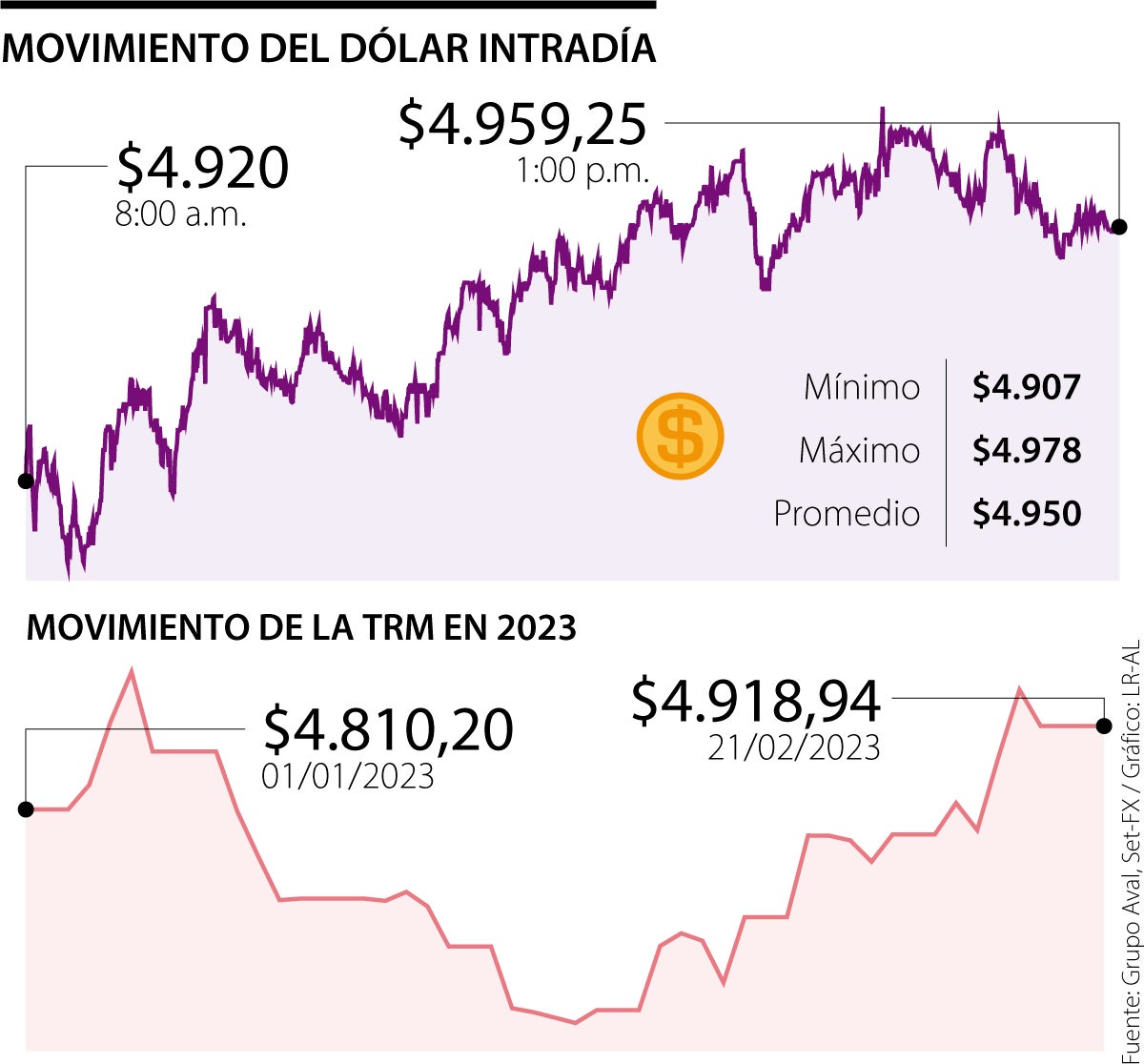 El dólar sigue acercándose sigilosamente a los $5.000 a mitad de semana. En la jornada de ayer, cerró a $4.950,12 en promedio, reafirmando su tendencia al alza, según reportes de la plataforma Set FX. La cifra se ubicó $31,18 arriba de la Tasa Representativa del Mercado (TRM), que para ayer fue de $4.918,94.