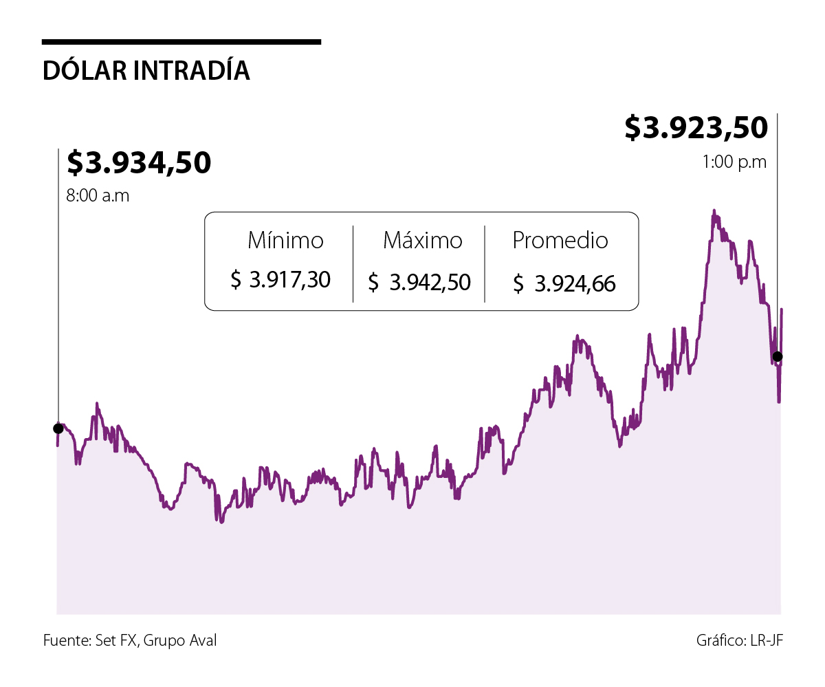 Al cierre del jueves, el dólar alcanzó un precio promedio de $3.924,66, lo que representó una caída de $37 frente a la Tasa Representativa del Mercado (TRM), que se ubicó en $3.961,66.
