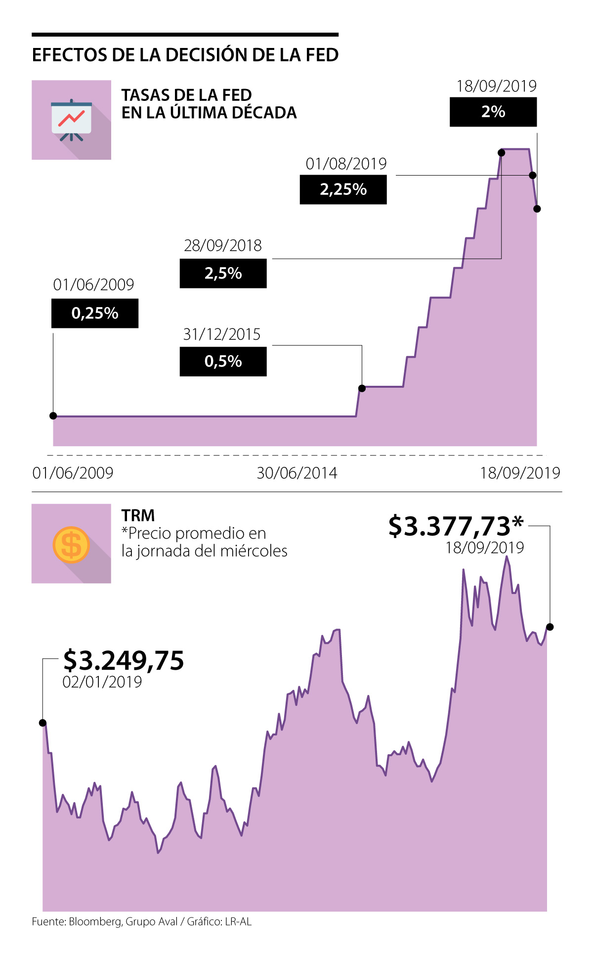 “Con el recorte de las tasas, la Fed busca que haya más recursos en la economía por la vía de los préstamos. Con la guerra comercial, ha disminuido la inversión por parte de los empresarios”, mencionó.