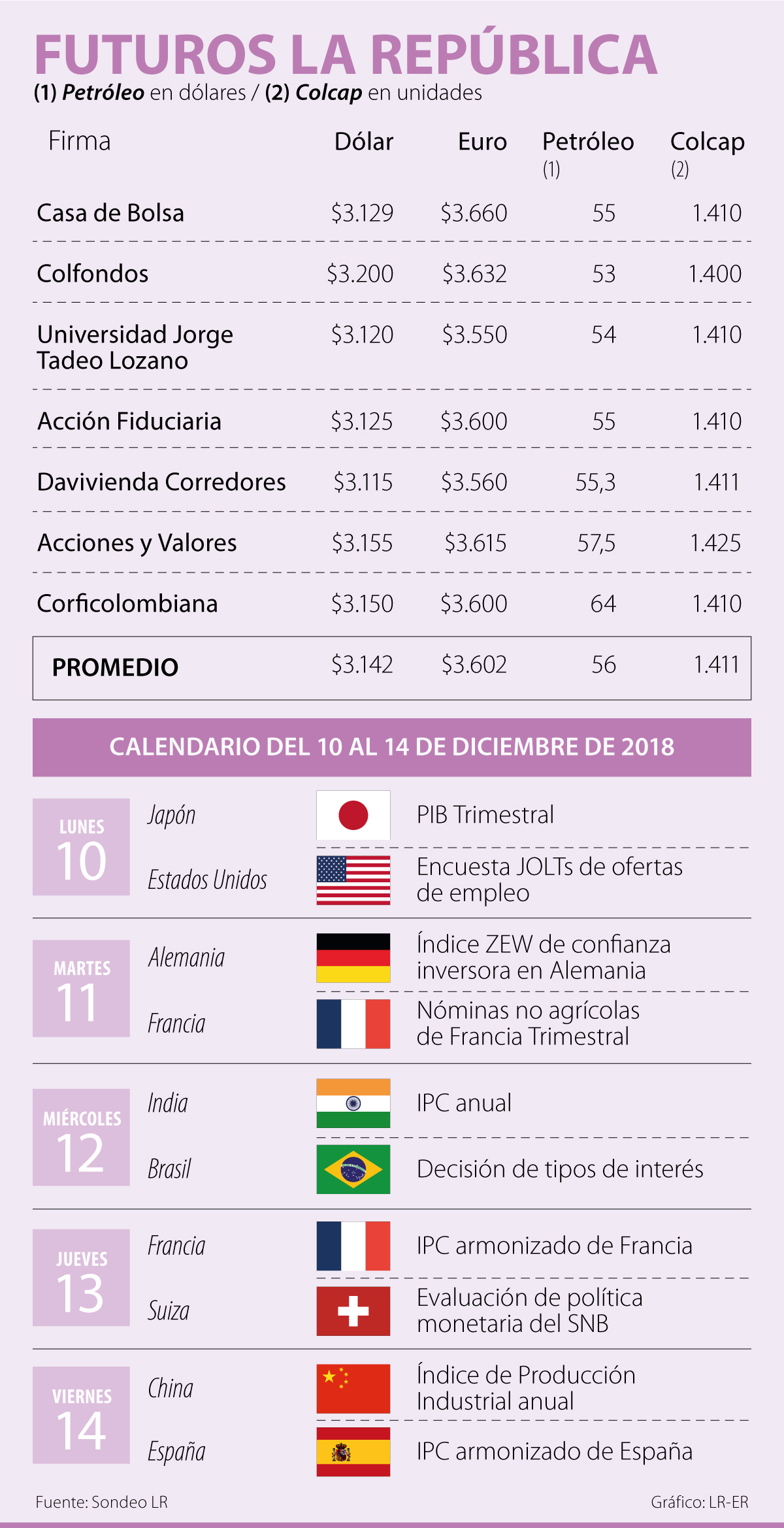 Se debe tener en cuenta que otro aspecto importante que ha favorecido el precio de la divisa en el mercado local es la leve corrección en la cotización del petróleo que se había afectado, según explicó Cristhian Alejandro Cruz, analista de commodities de Corficolombiana, “como consecuencia a la expectativa que generaron en los agentes la reunión de la Opep al final de la semana pasada y los resultado de la tregua comercial que plantearon Estados Unidos y China”.