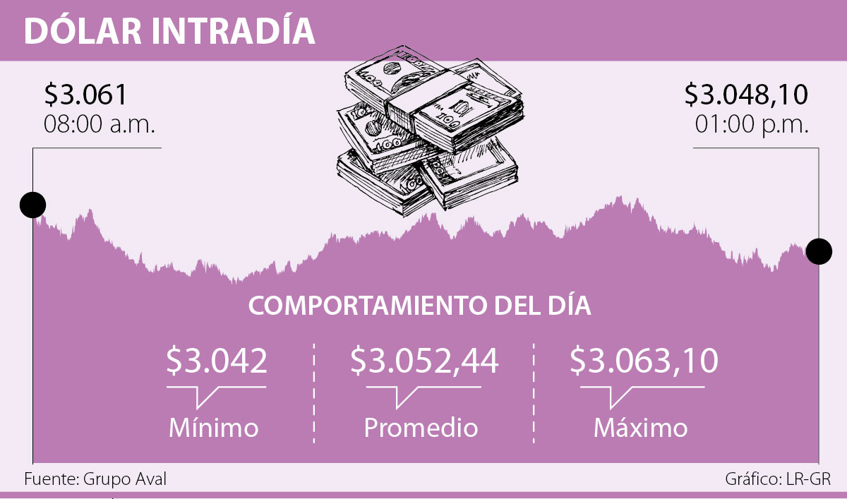 El miércoles el dólar siguió a la baja. Al cierre del día, se cotizó en promedio a $3.052,44, lo que implica que perdió $15,29 frente a la Tasa Representativa del Mercado (TRM), que se cotizaba de $3.067,73.