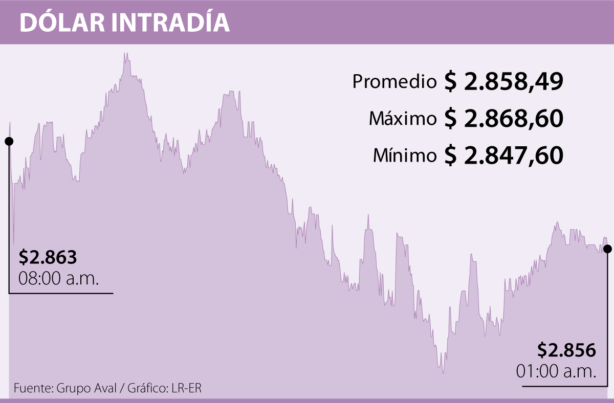La divisa abrió la jornada con un precio de $2.863 y su cierre fue de $2.856.