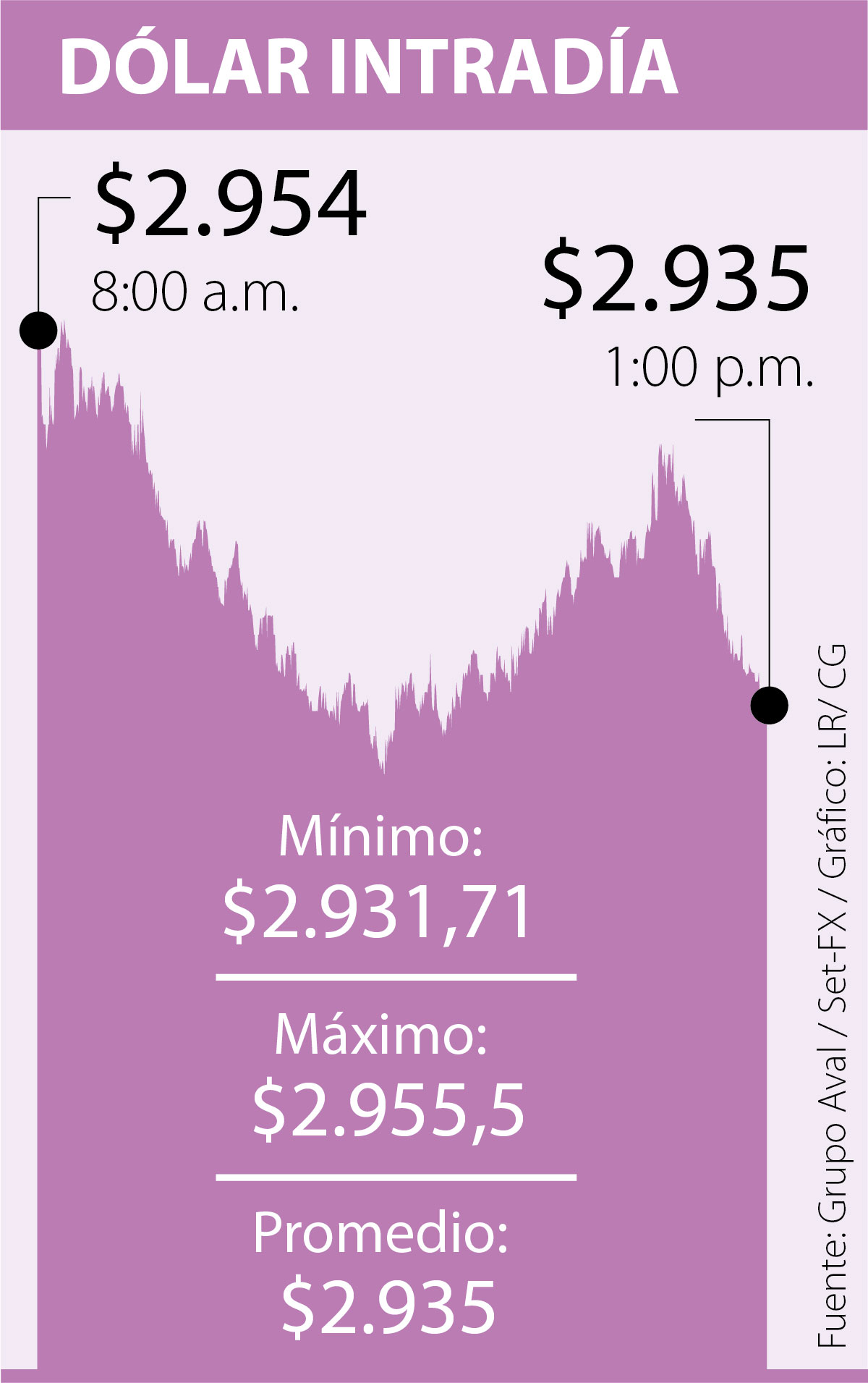 Sobre la 8:00 a.m., el valor del dólar estaba en $2.954, lo que implicaba una subida de $20 en las primeras transacciones, por cuenta de la aversión al riesgo que despertaba en los operadores la noticia de nuevas pruebas de misiles por parte de Corea del Norte.
