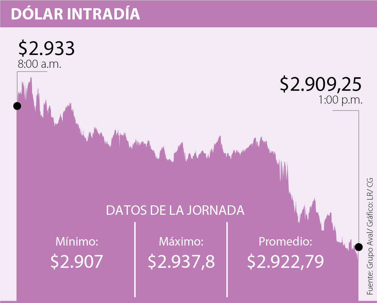 De acuerdo con la plataforma Set-Fx, la divisa abrió la jornada con un precio de $2.933 y su cierre fue de $2.909,25. Además, el mínimo que se registró fue de $2.907 mientras que el máximo alcanzado se ubicó en $2.937,80.