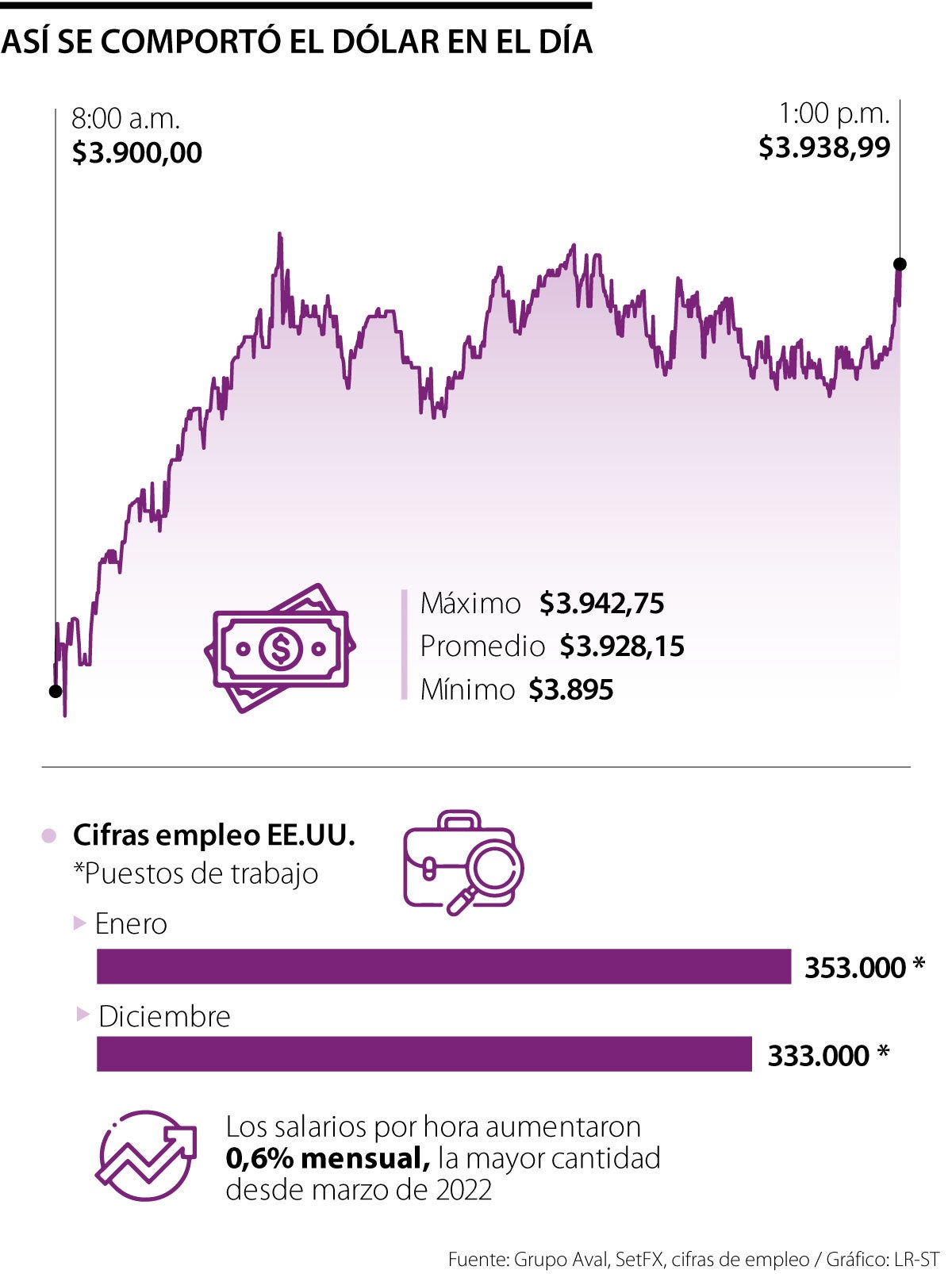 “Creo que el driver más fuerte de este repunte de más de $30 es producto de los resultados de nómina de Estado Unidos durante el mes de enero”, explicó Wilson Tovar, director de Investigaciones en Acciones & Valores.