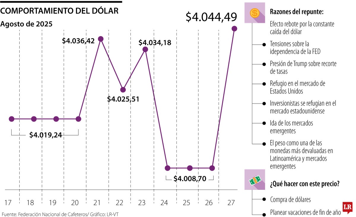 Catalina Tobón, gerente de estrategia de Skandia Colombia, explicó que “el ruido frente a la independencia de la FED con el despido de la gobernadora Lisa Cook, por parte de Trump, tras las acusaciones por presunto fraude inmobiliario, generaron aversión al riesgo y toma de ganancias en mercados accionarios, mercados emergentes y desvalorizaciones en monedas emergentes incluyendo el peso colombiano”.