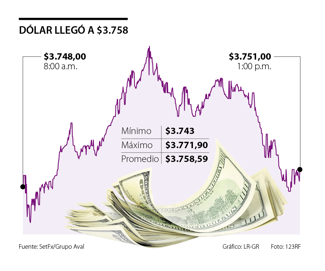 El dólar terminó la semana en un precio promedio de negociación de $3.758, lo que significó un alza de $25 en los últimos cuatro días.