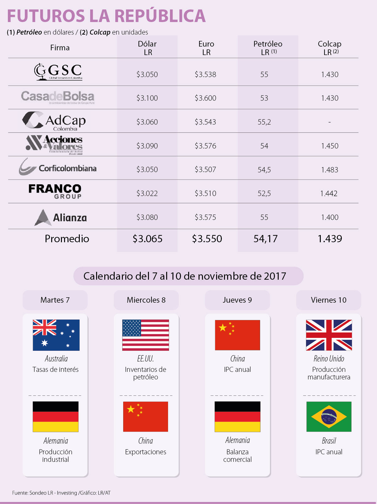 Un elevado precio del petróleo jugaría a favor de la plaza bursátil local, ya que si se suma un crudo al alza con números positivos de Ecopetrol, que entrega sus resultados financieros del tercer trimestre hoy, se podría ver una recuperación en el índice Colcap, que cerró el viernes en 1.418,58 unidades, hacia los 1.439 puntos, aunque hay quienes creen que podría borrar todas las pérdidas de las últimas semanas y terminar en 1.483 enteros. Érika Baquero, analista de renta variable de Alianza Valores, explicó que, de no ser buenos los resultados, el Colcap podría seguir bajando hacia 1.400.