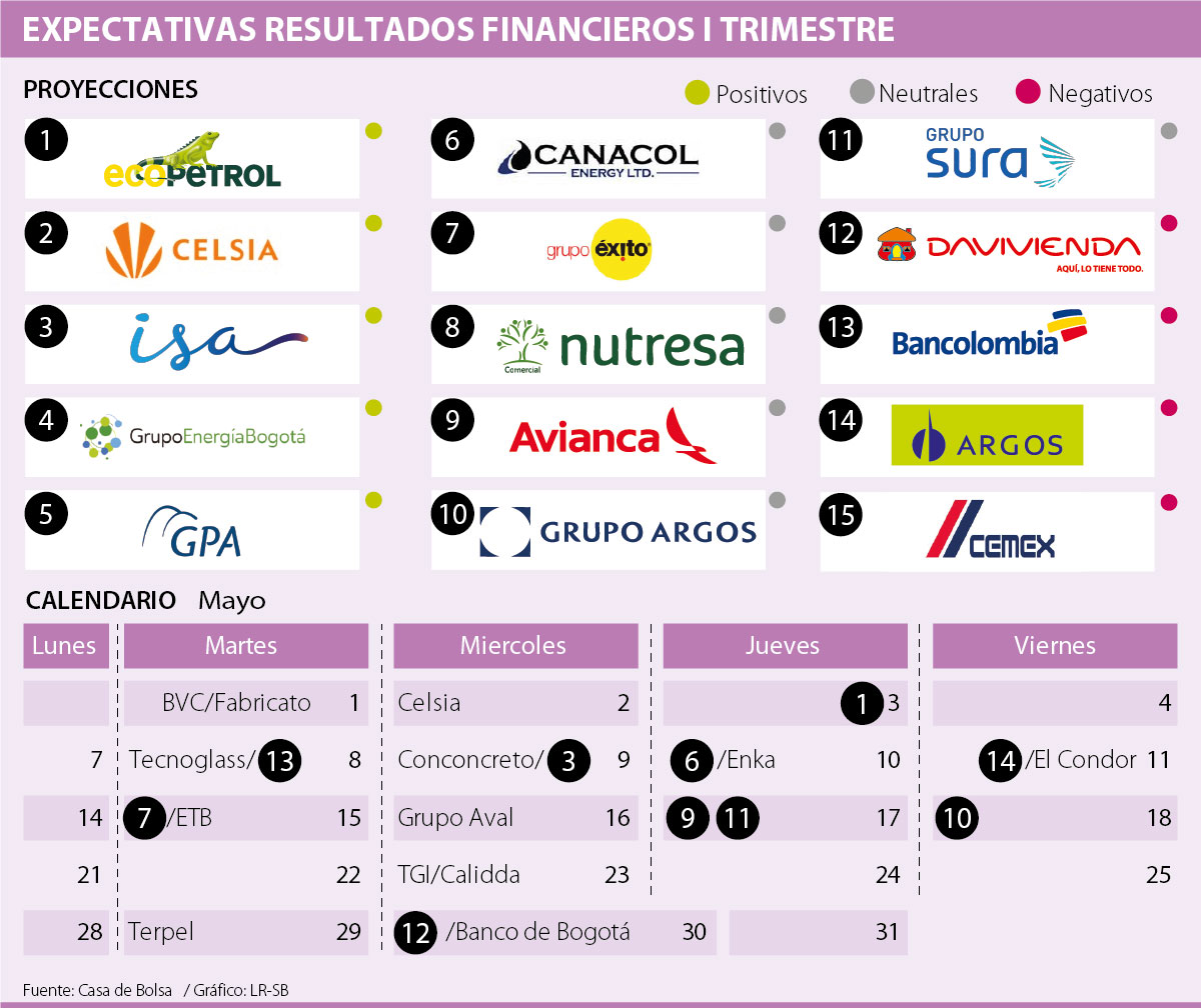 En mayo inicia el calendario de entrega de resultados financieros del primer trimestre de las principales empresas del país y los analistas proyectan que las que liderarán con los mejores números serán las del sector petrolero y utilities; que se vieron beneficiadas por mejores precios tanto del petróleo como de energía en bolsa.
