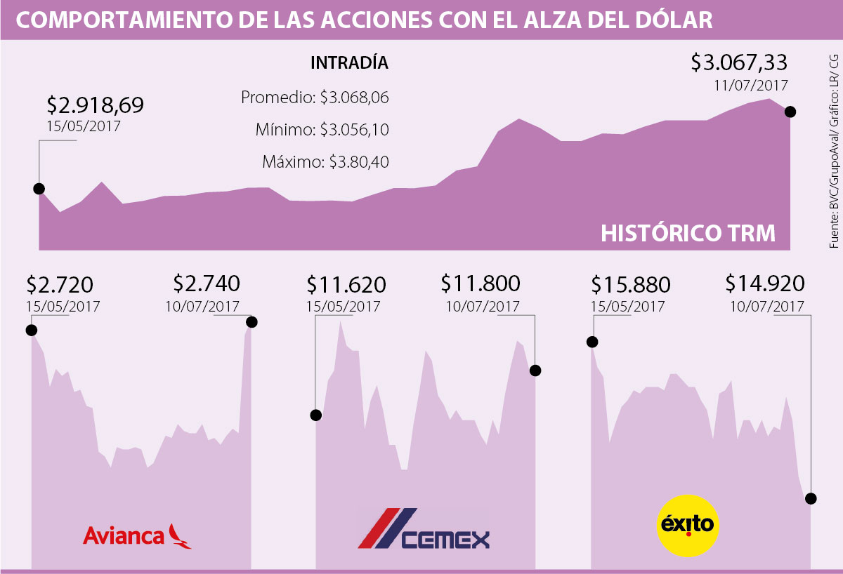 Con un dólar fuerte, por encima de la barrera de $3.000, algunas compañías que cotizan en la Bolsa de Valores de Colombia (BVC) podrían ver sus balances financieros trastocados. Sin una cobertura cambiara que mitigue el riesgo de la divisa estadounidense, empresas como Avianca, Cemex Latam Holdings, Grupo Éxito, Enka, EEB, Ecopetrol o Nutresa podrían ver sus cuentas afectadas.