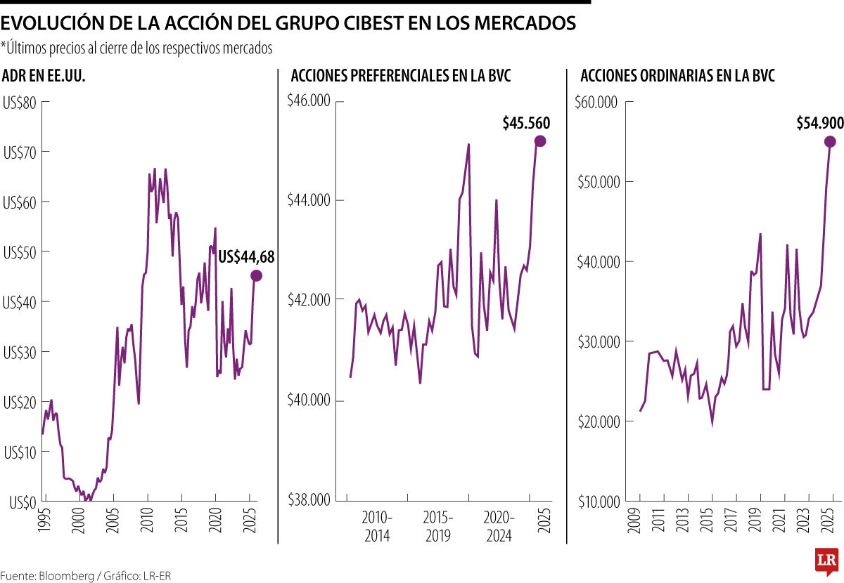 En este lapso, de acuerdo a los cálculos de la plataforma Bloomberg, el American Deposit Receit, ADR, tuvo un incremento de US$31 pasando de US$13,3 en 1995 hasta US$45,22 al cierre del mercado.