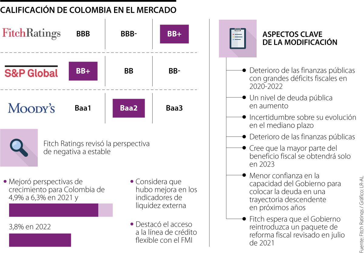 La agencia Fitch Ratings cambió la calificación de la deuda a largo plazo en moneda extranjera de Colombia y le quitó el grado de inversión a la Nación, al pasar la nota de BBB- a BB+. Además, revisó la perspectiva de negativa a estable.