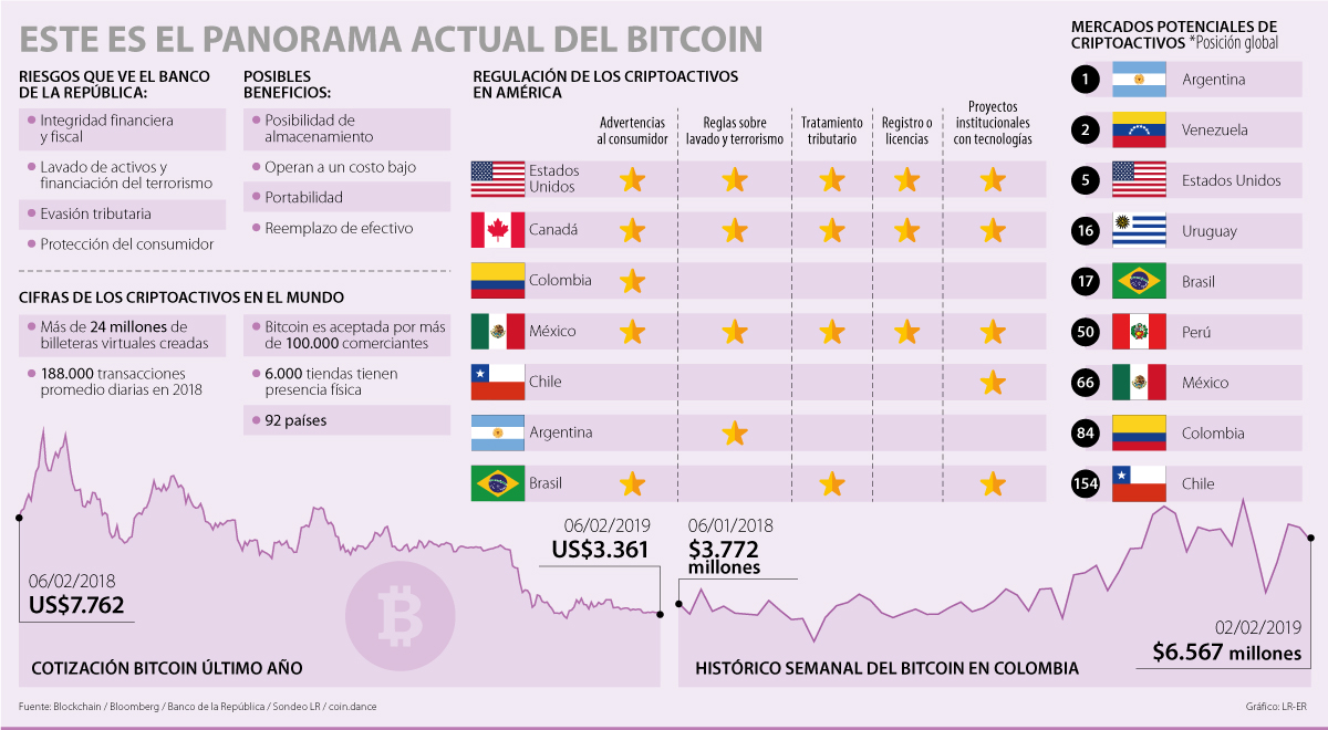 A pesar de que en el índice de mercados potenciales de Bitcoin de Garrick Hileman (firma que realiza estudios de mercado para Blockchain), Colombia ocupa la casilla 84, hoy cerca de 80% de los movimientos regionales del Bitcoin se hacen en el país.
