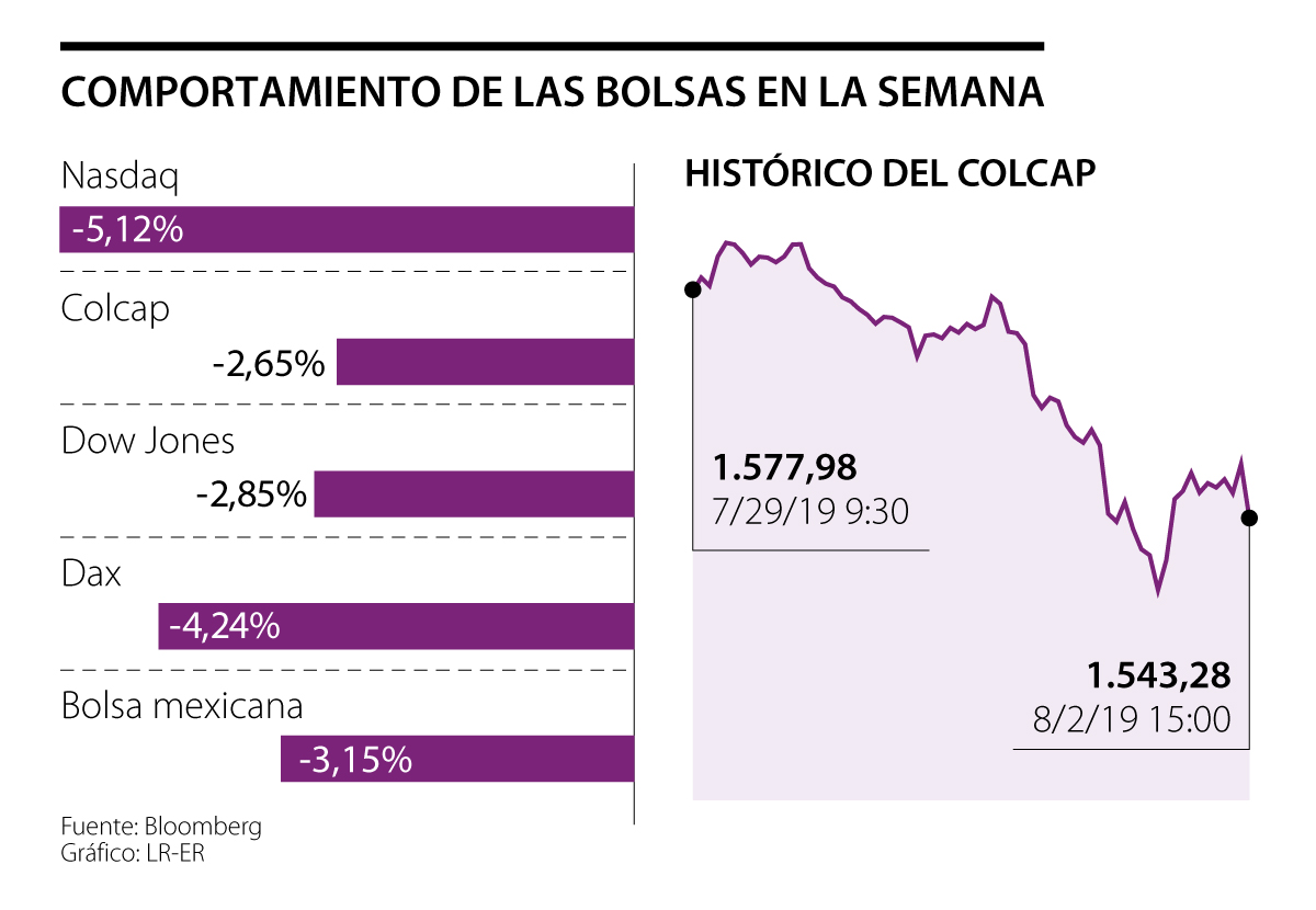 A nivel local, el Colcap perdió 2,6% de su valor en la semana al cerrar en 1.543 puntos, de acuerdo con los datos registrados en Bloomberg. Este factor afectó la baja en los precios del petróleo que pese a cerrar el viernes con ganancias, finalizaron las semanas con pérdidas, impactando la acción de Ecopetrol, una de las principales del índice colombiano.