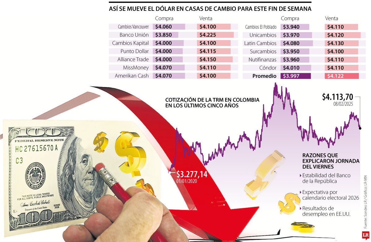 En concreto, el dólar callejero se compra en promedio en $3.997 y se vende en $$4.122, de acuerdo con un ejercicio que realizó LR entre 13 casas de cambio en el país. Teniendo en cuenta una TRM sobre $4.113 para este fin de semana, la compra de la divisa está en $115 por debajo del indicador.