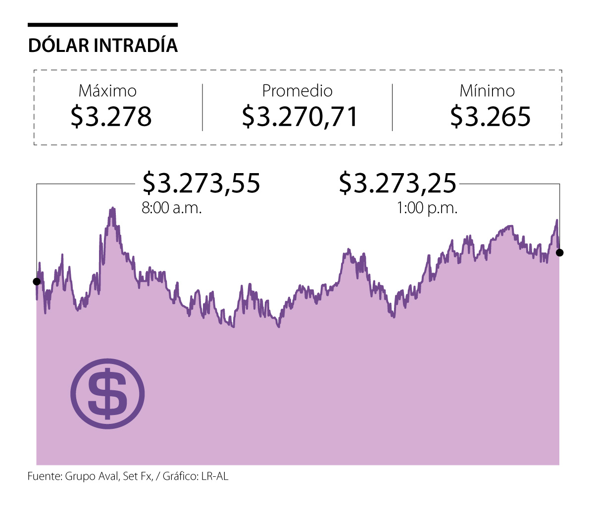 La moneda norteamericana finalizó la semana cotizándose en un precio promedio de $3.270,7, lo que representó una caída de $17,9 frente a su cierre de la semana anterior, por lo que la divisa completa dos semanas a la baja después de tocar sus precios máximos del año al cierre de mayo. En la sesión, el cierre fue de $3.273,25, mientras que el máximo fue de $3.278.