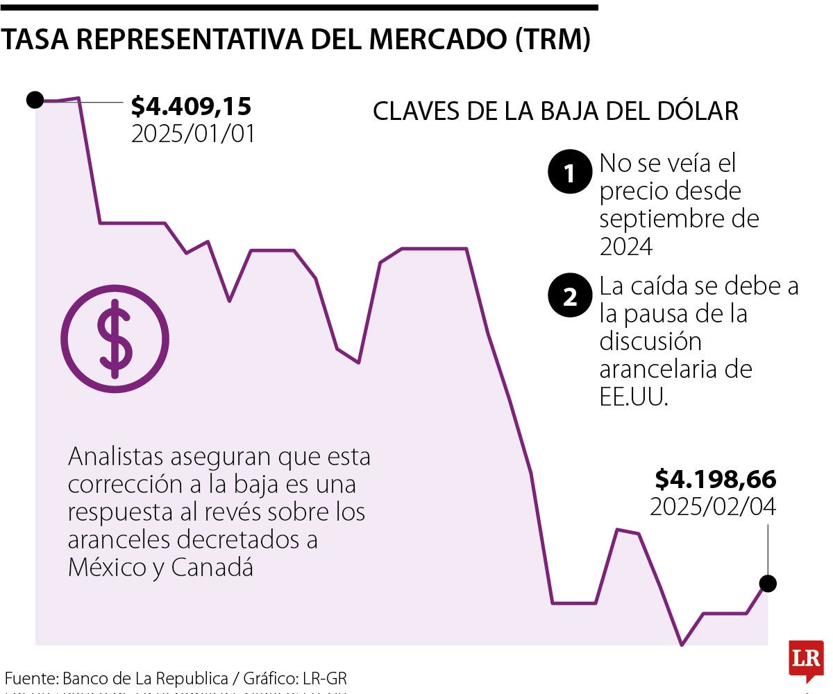 Si su presupuesto personal se ve afectado por el ritmo de la divisa estadounidense, este es el momento de tomar decisiones. El dólar cerró ayer martes en $4.153, con una baja de $45,12 frente a la Tasa Representativa del Mercado, llegando a niveles que no alcanzaban desde el 24 de septiembre de 2024, cuando la TRM cerró en $4.155,31.