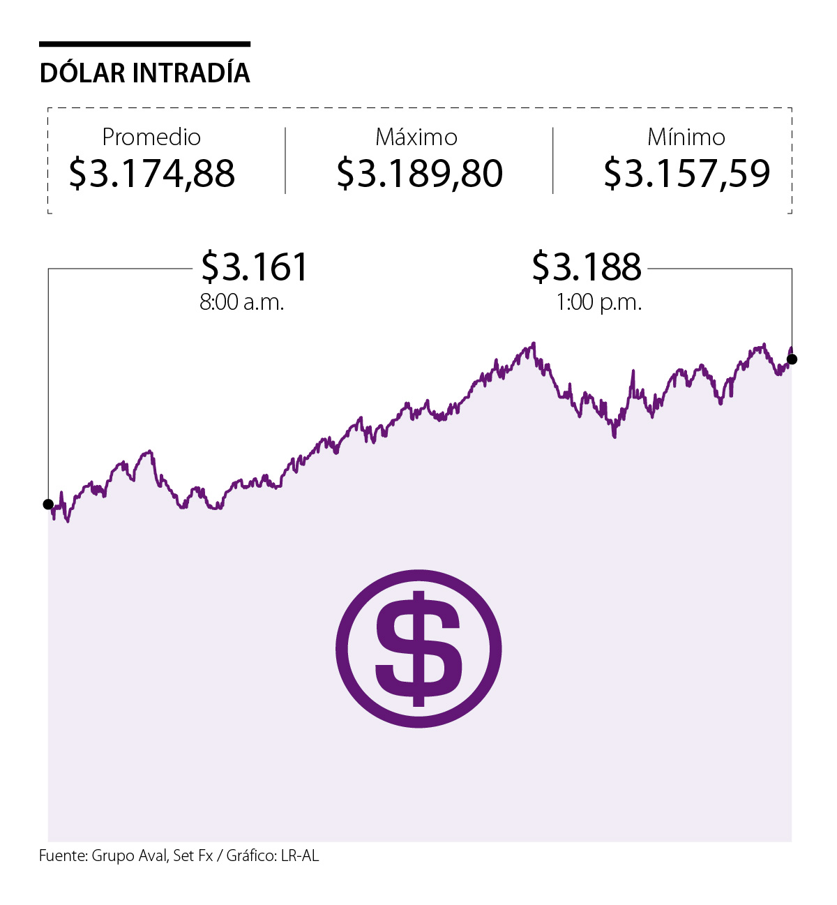 En las operaciones la moneda alcanzó un precio mínimo de $3.157,59 y un máximo de $3.189,8, llegando a la cotización de $3.188 a su cierre.