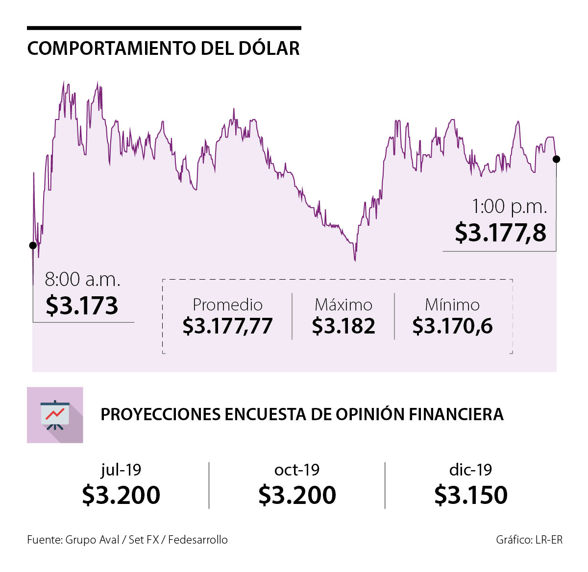 La divisa abrió la sesión con un precio de $3.173 y su cierre fue de $3.177,80, mientras el precio mínimo que se registró en la plataforma Set-Fx fue de $3.170,60 y el máximo $3.182.