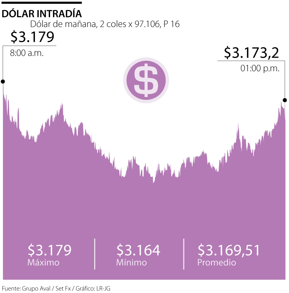 En la última jornada de la semana el dólar cotizó en un precio promedio de $3.169,5, lo que representó una caída de $13,5 frente a la Tasa Representativa del Mercado que para el viernes se ubicó en $3.183,01.