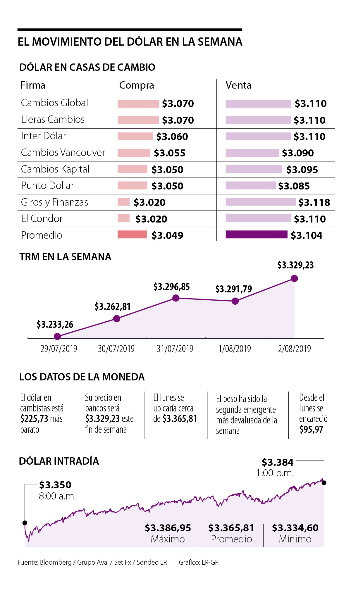 Al revisar ocho de las principales firmas cambistas del país, se encuentra que la venta del dólar llega a un precio promedio de $3.104; mientras que en el mercado oficial, la moneda cotiza con un valor promedio de $3.445 al inicio de la jornada del lunes, llegando a su máximo histórico.