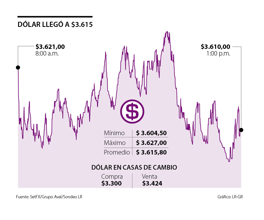 Además, con este nivel de $3.615, el dólar alcanzó su precio más bajo desde el último mes, cuando el 9 de junio se ubicó en $3.599.