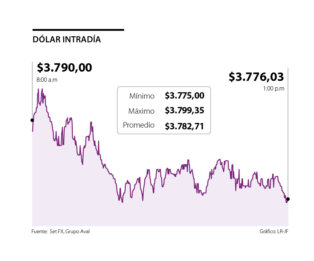 La divisa abrió la jornada con un precio de $3.790, mientras que el precio mínimo llegó a $3.775 y el máximo fue de $3.799,35. El monto negociado durante el día fue de US$758 millones en 999 transacciones. Si se tiene en cuenta el precio promedio de ayer y la TRM de $3.926,06 con la que inició la semana, el dólar perdió $151,81 en estos días.