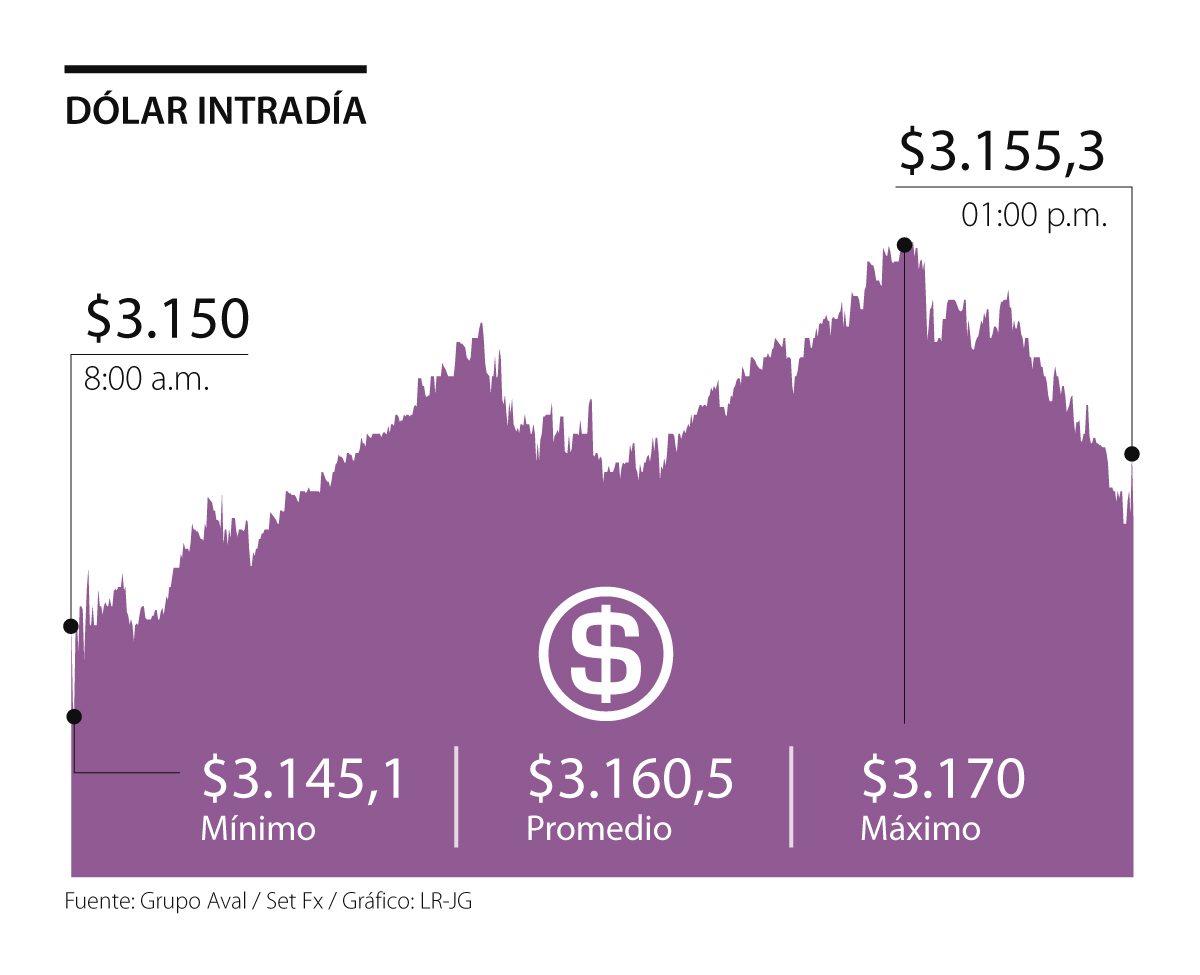 En la última jornada de la semana la divisa se estabilizó un poco y perdió $0,36 frente a la Tasa Representativa del Mercado de $3.160,87, y cerró en un promedio de $3.160,51.